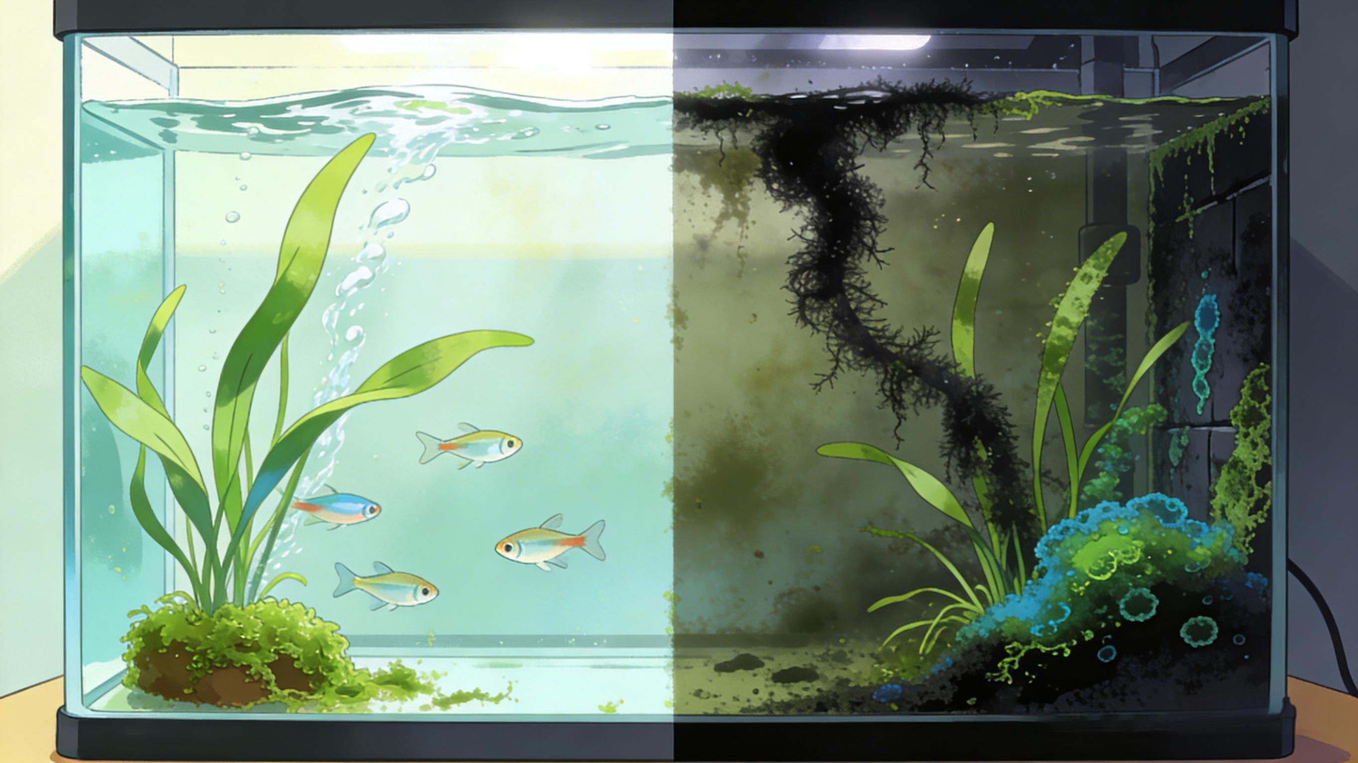 Algae are simple, photosynthetic organisms that thrive in aquatic environments, including home aquariums. They require three primary things to grow: light, nutrients (such as ammonia, nitrates, and phosphates), and water—all of which are naturally present in any tank housing fish and plants. While excessive algae growth can be unsightly and problematic, small, controlled amounts are a normal and healthy part of your aquarium’s ecosystem. Algae act as a "bioindicator": their presence (or absence) and type can tell you a lot about your tank’s water quality and balance. A tank with no algae at all may actually be unstable, while one with moderate algae growth is often a sign of a well-functioning environment.