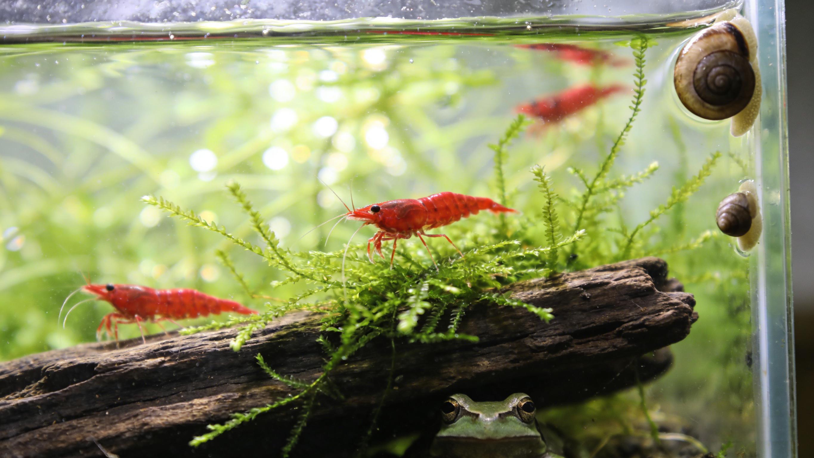 Many non-fish creatures are more sensitive to poor water quality than fish. Shrimp, in particular, are “canaries in the coal mine”—they will die quickly if ammonia, nitrite, or nitrate levels are too high. Snails and frogs are also sensitive to chlorine, chloramine, and heavy metals in tap water.