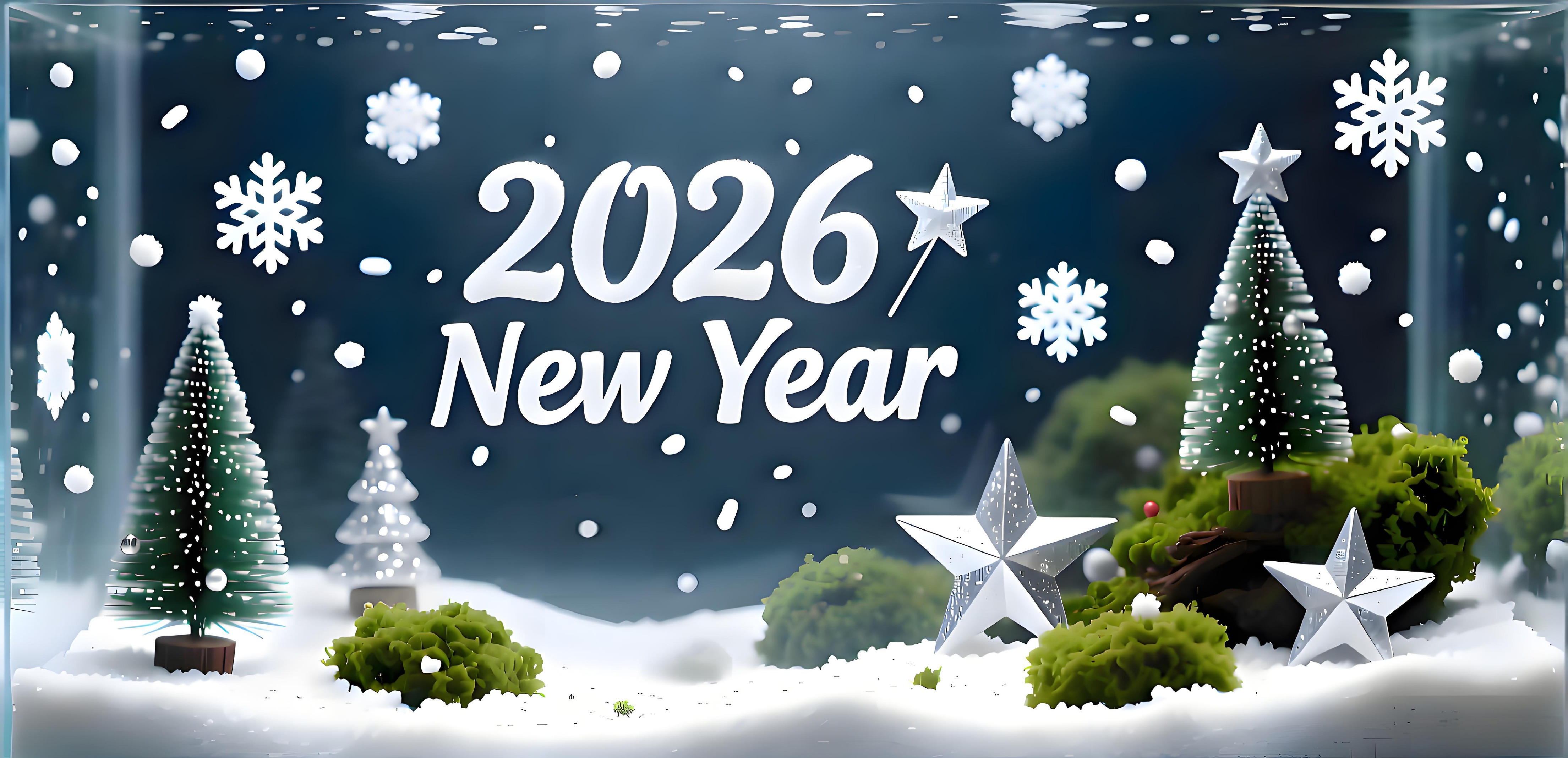 Dive into the magical world of 2026 New Year with this stunning aquarium-themed wallpaper! Set against a deep blue backdrop, it features a whimsical underwater scene: snowflakes gently "fall" through the water, while a cluster of green Christmas trees—adorned with twinkling white stars—stands tall on a bed of soft, white "snow." The year "2026" and "New Year" are written in elegant white font, surrounded by more stars and snowflakes, creating a festive, dreamy atmosphere. Perfect for decorating your device and spreading holiday cheer!