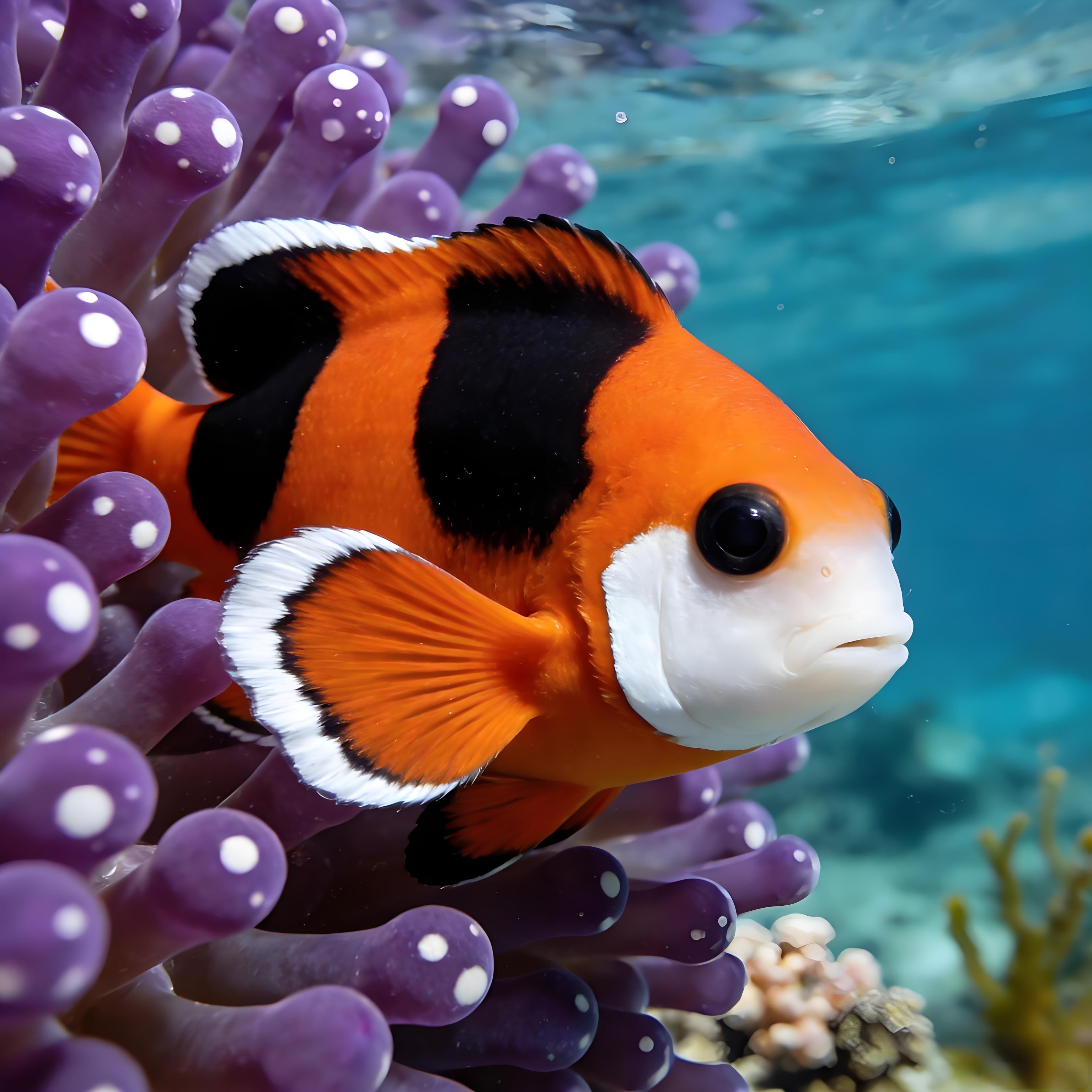 - Symbiotic Relationship: They form mutualistic bonds with sea anemones. The clownfish gain protection from predators by sheltering among the anemone’s stinging tentacles (their mucus layer prevents stinging), while the anemone benefits from waste fertilization and protection against polyp-eating fish.